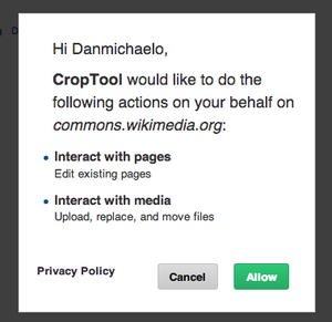 | 2. To use CropTool, you need to authorize it to use your Wikimedia Commons account using OAuth. |